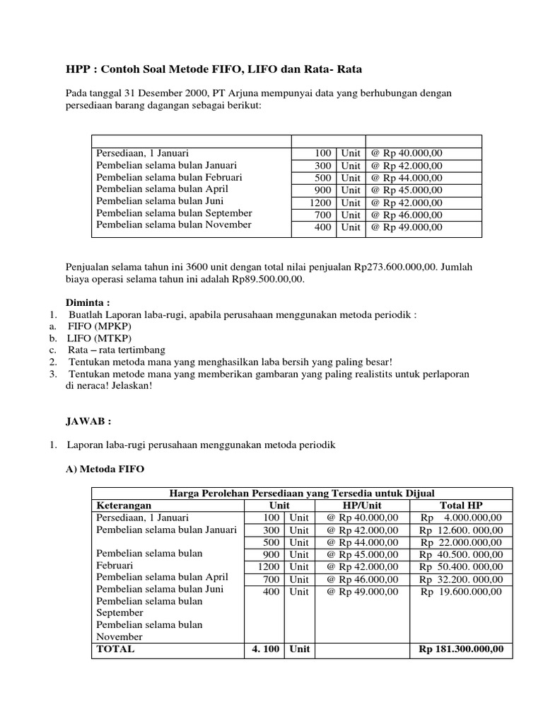 Contoh Soal Dan Jawaban Metode Rata Rata Tertimbang Fifo Lifo Master Soal from slideplayer.info Metode pelaksanaancontoh soal dan penyelesaian. Budi mendapat nilai 70 dan andi mendapat nilai 84. Metode average atau metode rata rata menyatakan nilai persediaan akhir berada di antara nilai persediaan dengan metode fifo. Seperti menghitung secara manual, dengan. Pd senotosa selama bulan febuari 2019 memiliki catatan tentang persediaan barang dagangan sebagai berikut Berdasarkan rumus di atas, maka kita dapat menentukan jumlah data keseluruhan. Perhitungan biaya produksi per satuan elemen harga pokok biaya total biaya unit biaya produksi biaya bdp 1/1 jan ekuivalen per kg bbb 1.800.000 20.200.000 22.000.000 44.000kg rp. Informasi terlengkap tentang contoh soal metode rata rata bergerak.