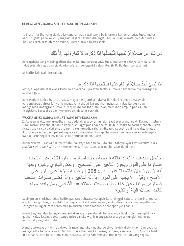 Hukum Mengqadha Shalat Wajib Dan Dalilnya Dalamislam Com from dalamislam.com Misalnya, jika seseorang terluput shalat shubuh karena tertidur, maka ia wajib mengqadha dengan mengerjakan shalat yang sama dengan shalat shubuh. Jun 09, 2021 · qadha sholat: Dan dalam pelaksanaannya, qadha' shalat ini mempunyai beberapa ketentuan dan aturan, antara lain : Jul 27, 2016 · memang benar sekali bahwa qadha' shalat yang terlewat ini merupakan hal yang telah disepakati oleh seluruh ulama, tanpa kecuali. Inilah cara mengerjakan shalat dalam kondisi normal, sebagaimana jadwal shalat yang telah dimaklumi bersama. Tata cara dan ketentuan salat jamak qashar bagi seorang muslim. Shalat yang dikerjakan dalam rangka qadha sama persis seperti shalat yang ditinggalkan dalam hal sifat dan tata caranya. Namun dalam pelaksanaannya, qodho sholat ini punya syarat dan aturannya yang harus dipatuhi.